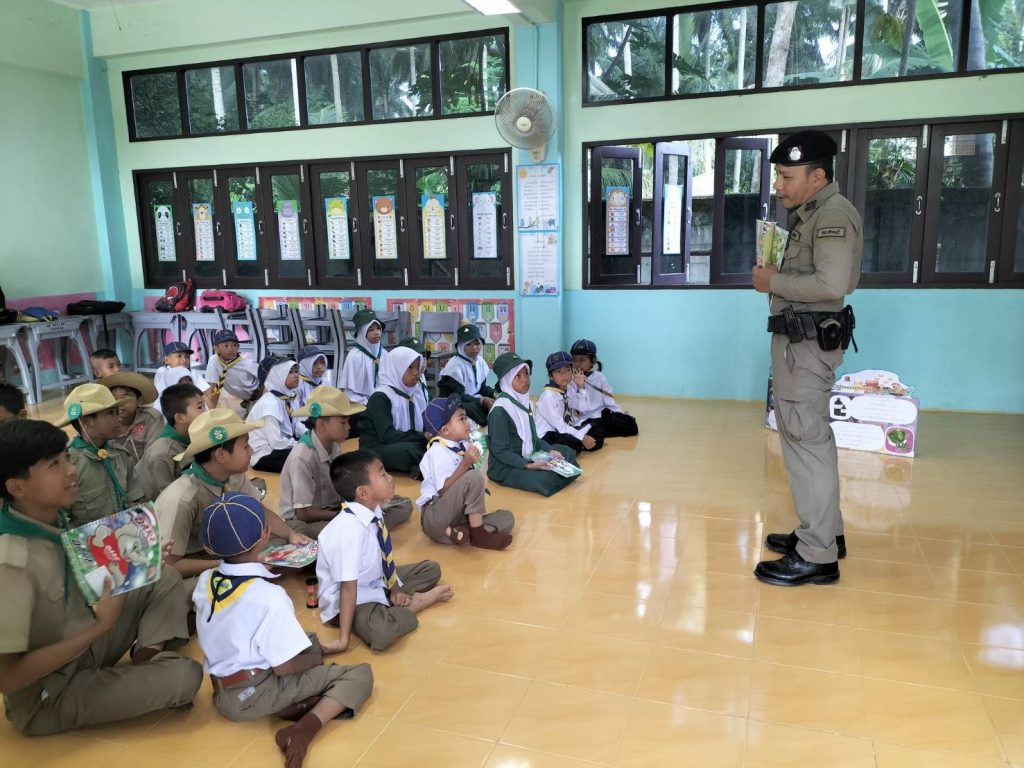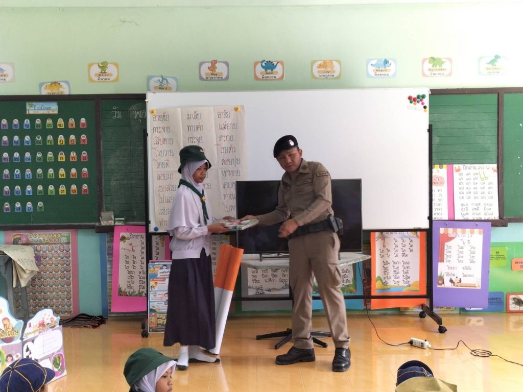 เมื่อวันที่ 3 ม.ค.2567 เวลาประมาณ 09.30 น. ภายใต้อำนวยการของ พ.ต.อ.เฉลิมชัย เพชรกาศ ผกก.สภ.สายบุรี,พ.ต.ท.วิรัช ซุ้นอื้อ รอง ผกก.ป.สภ.สายบุรี,พ.ต.ท.อาลี หลีเยาว์ lวป.สภ.สายบุรี,พ.ต.ต.จำนัน ดำรงศักดิ์วิรุฬห์ สวป.สภ.สายบุรี มอบหมายให้ จ.ส.ต.สุเมธ ศรีกรด ปฏิบัติหน้าที่ร้อยเวร 20 ว.4 โรงเรียนบ้านวังไชย ตำบลละหาร อ.สายบุรี เข้าร่วมกิจกรรมโครงการโรงเรียนสีขาว ปลอดยาเสพติดและอบายมุข ร่วมกับ ปลัดตำบลละหาร,จนท.สาธารณสุข,ผู้นำชุมชน,ผู้นำทางศาสนา จ.ส.ต.สุเมธ ศรีกรด ครูแดร์ หรือ D.A.R.E. บรรยายให้ความรู้แก่นักเรียนเพื่อให้เด็กนักเรียนเข้าใจเกี่ยวกับการต่อต้านการใช้ยาเสพติดและวิธีหลีกเลี่ยงการใช้ความรุนแรง