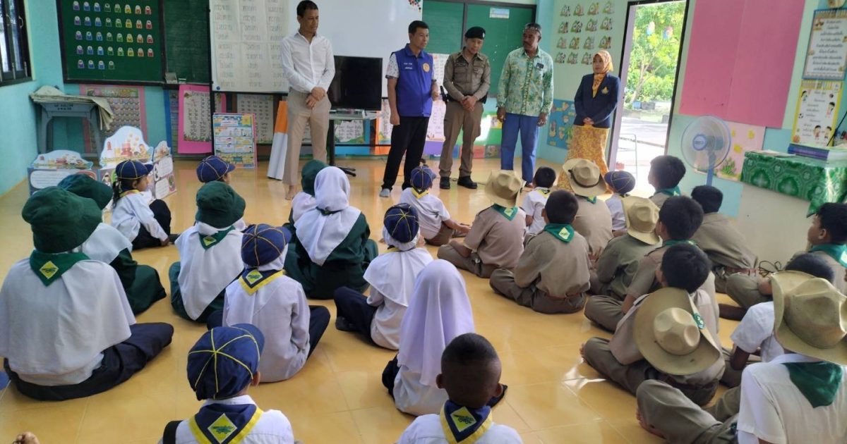 เมื่อวันที่ 3 ม.ค.2567 เวลาประมาณ 09.30 น. ภายใต้อำนวยการของ พ.ต.อ.เฉลิมชัย เพชรกาศ ผกก.สภ.สายบุรี,พ.ต.ท.วิรัช ซุ้นอื้อ รอง ผกก.ป.สภ.สายบุรี,พ.ต.ท.อาลี หลีเยาว์ lวป.สภ.สายบุรี,พ.ต.ต.จำนัน ดำรงศักดิ์วิรุฬห์ สวป.สภ.สายบุรี มอบหมายให้ จ.ส.ต.สุเมธ ศรีกรด ปฏิบัติหน้าที่ร้อยเวร 20 ว.4 โรงเรียนบ้านวังไชย ตำบลละหาร อ.สายบุรี เข้าร่วมกิจกรรมโครงการโรงเรียนสีขาว ปลอดยาเสพติดและอบายมุข ร่วมกับ ปลัดตำบลละหาร,จนท.สาธารณสุข,ผู้นำชุมชน,ผู้นำทางศาสนา จ.ส.ต.สุเมธ ศรีกรด ครูแดร์ หรือ D.A.R.E. บรรยายให้ความรู้แก่นักเรียนเพื่อให้เด็กนักเรียนเข้าใจเกี่ยวกับการต่อต้านการใช้ยาเสพติดและวิธีหลีกเลี่ยงการใช้ความรุนแรง