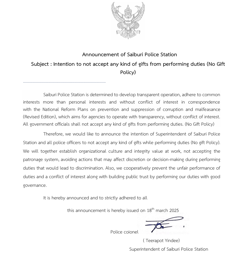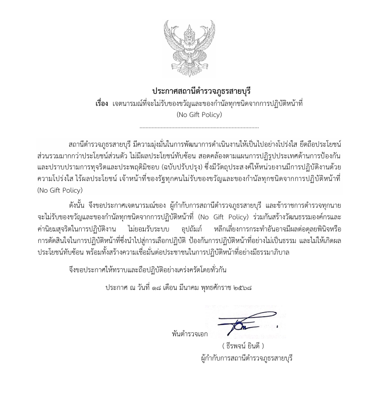 ประกาศเจตนารมณ์ไม่รับของขวัญหรือของกำนัลทุกชนิด (No Gift Policy) 20 มีนาคม 2568 โดย admin / กิจกรรม ITA,ข่าวประชาสัมพันธ์ FacebookFacebookXXLINELine