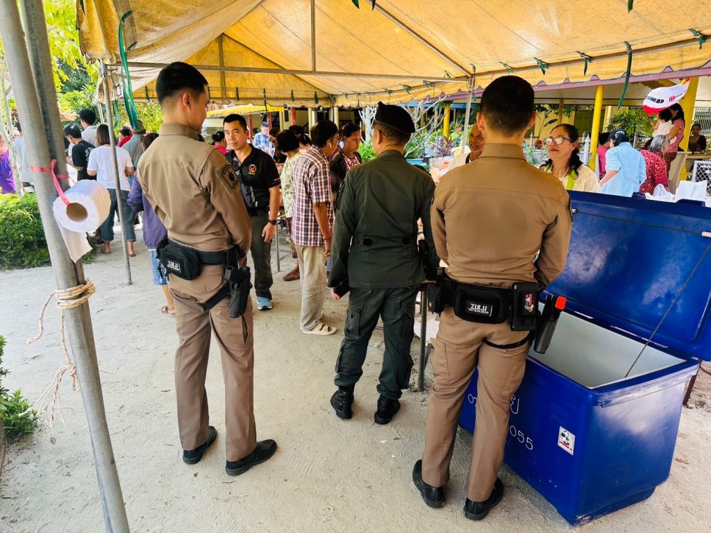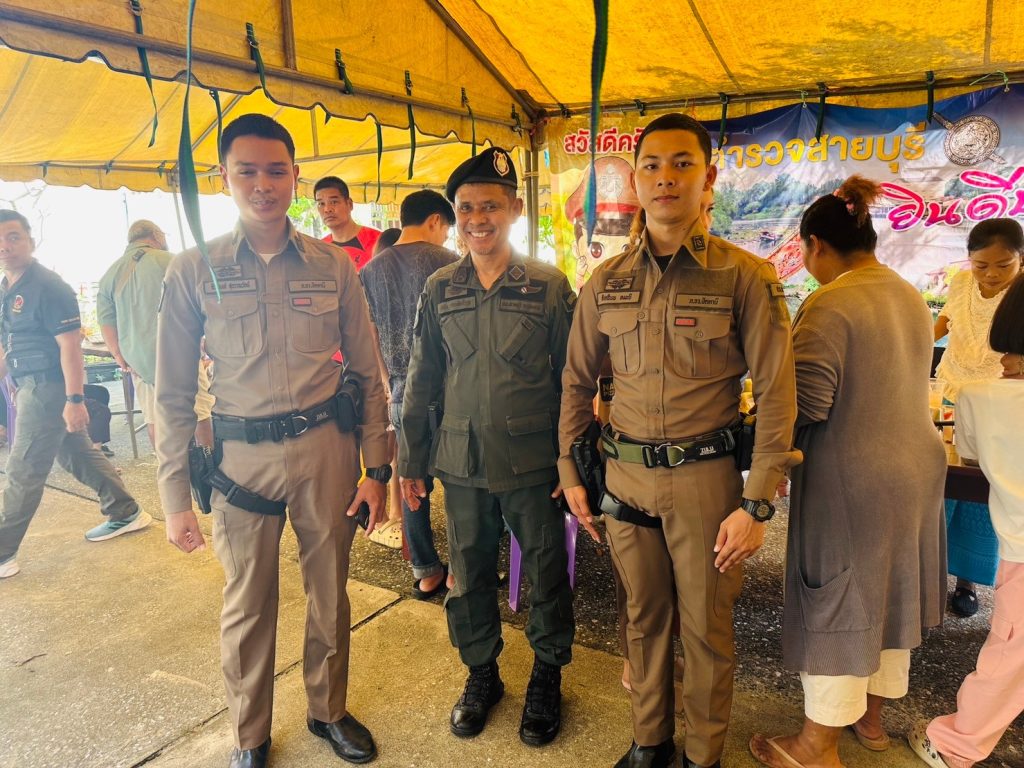 พ.ต.ต.จำนัน ดำรงศักดิ์วิรุฬห์ สวป.สภ.สายบุรี ว.4 งานบุญกุศลทอดผ้าป่าสามัคคี ณ วัดเลียบ ต.ตะลุบัน อ.สายบุรี