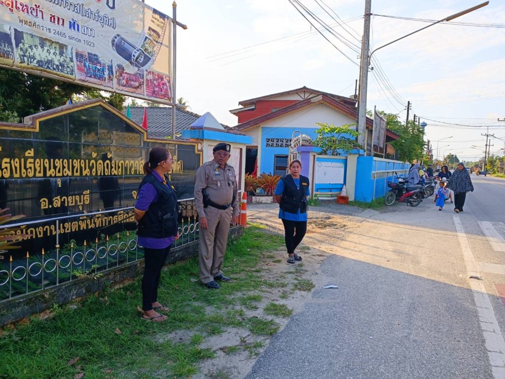 เมื่อวันที่ 3 ม.ค.2567 เวลาประมาณ 07.30 น. ภายใต้การอำนวยการของ พ.ต.อ.เฉลิมชัย เพชรกาศ ผกก.สภ.สายบุรี มอบหมายให้ พ.ต.ท. วิรัช ซุ้นอื้อ รอง ผกก.ป.สภ.สายบุรี ตรวจสอบความเรียบร้อยเส้นทางทั่วไปในพื้นที่ พร้อมทั้งพบปะพูดคุยกับประชาชนและดูแลอำนวยความสะดวกหน้าโรงเรียนการใช้รถใช้ถนนเพื่อความสะดวกปลอดภัยแก่ผู้ปกครองและนักเรียน