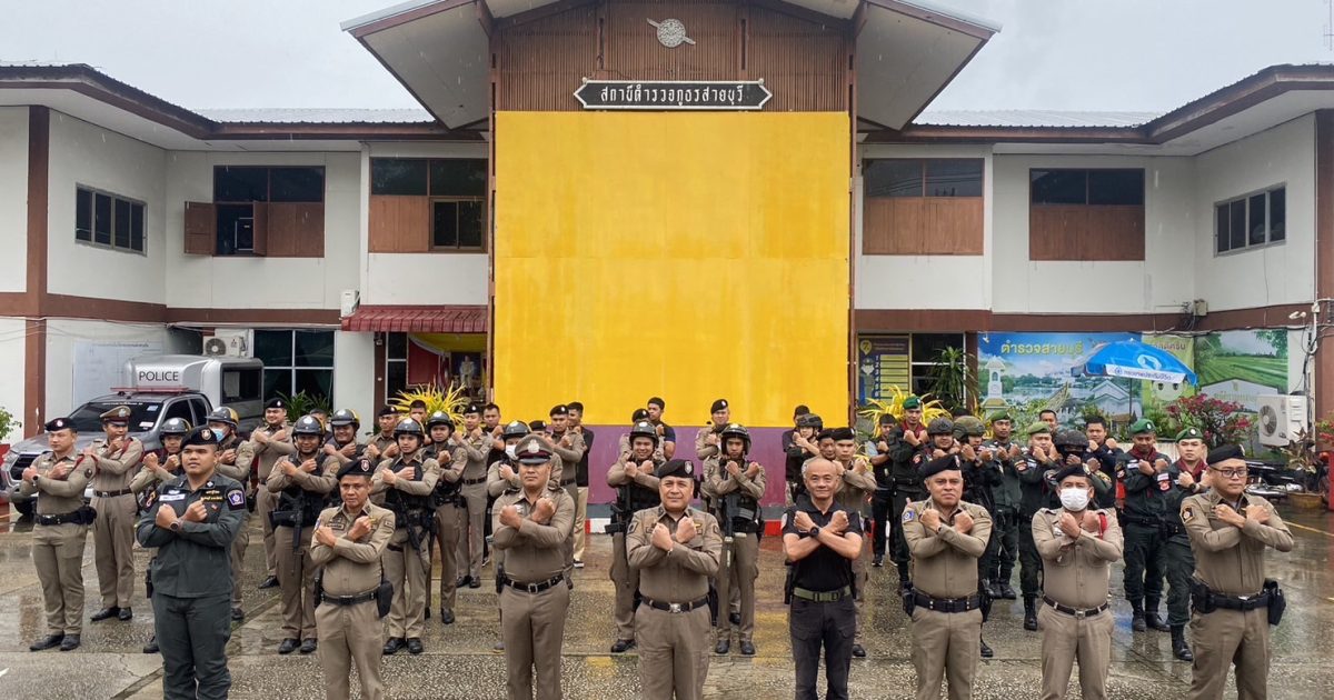 พ.ต.อ.เฉลิมชัย เพชรกาศ ผกก.สภ.สายบุรี และข้าราชการตำรวจ สภ.สายบุรี ร่วมกิจกรรมแสดงเจตจำนง “ประกาศนโยบายต่อต้านการรับสินบน( Anti – bribery Policy ) และนโยบายไม่รับของขวัญและของกำนัลทุกชนิด (No Gift Policy)