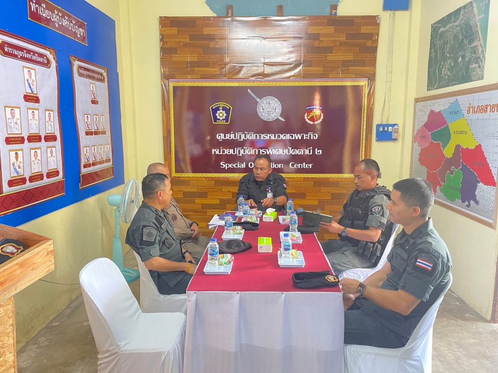 พ.ต.อ.เฉลิมชัย เพชรกาศ ผกก.สภ.สายบุรี ร่วมให้การต้อนรับ พล.ต.ท.ปิยะวัฒน์ เฉลิมศรี ผบช.ภ.9 ได้เดินทางมาตรวจเยี่ยมผลการปฎิบัติของฐานปฏิบัติการ