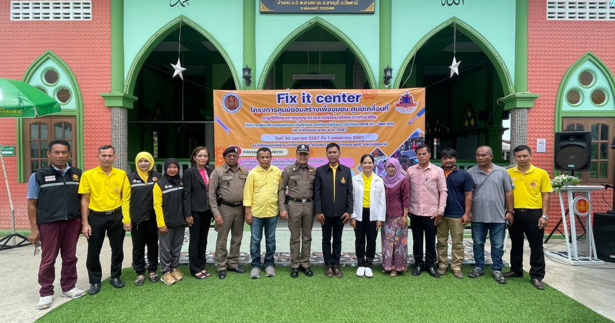 พ.ต.อ.เฉลิมชัย เพชรกาศ ผกก.สภ.สายบุรี และ รอง ผกก.ป.สภ.สายบุรี ร่วมพิธีเปิด Fix it center โครงการศูนย์ซ่อมสร้างเพื่อชุมชนศูนย์เคลื่อนที่ ของวิทยาลัยการอาชีพสายบุรี