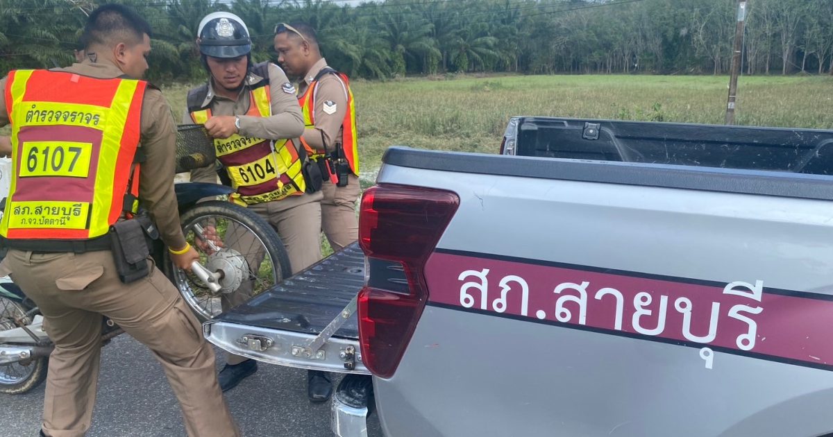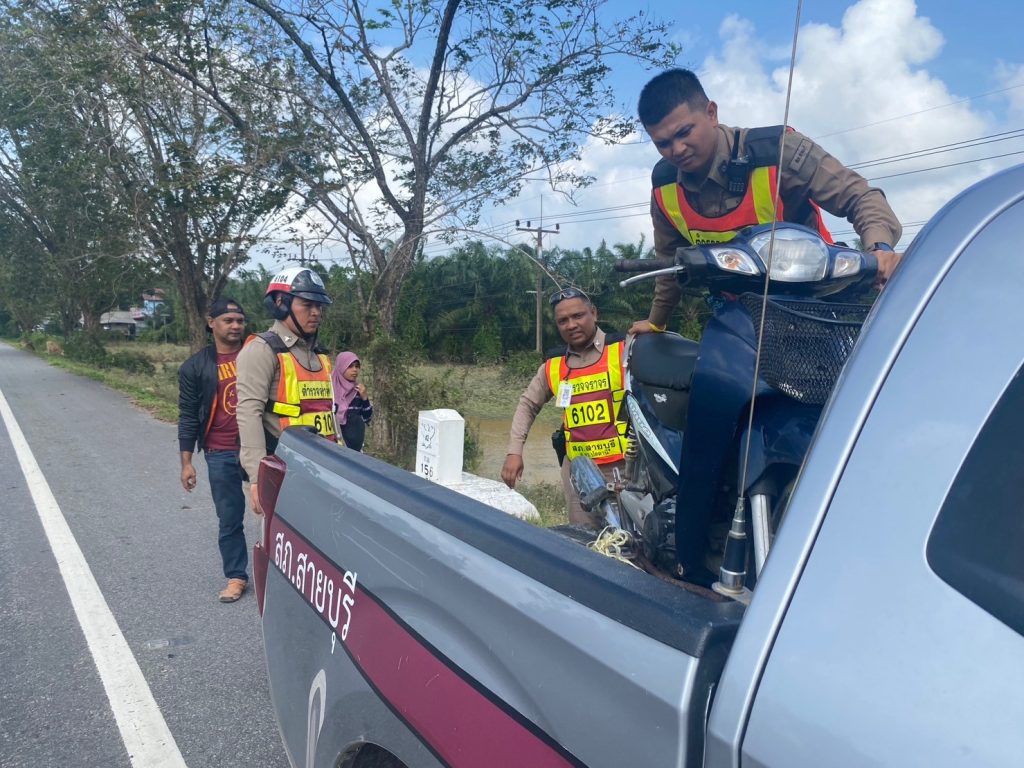 เมื่อวันที่ 30 ธ.ค.2566 เวลาประมาณ 13.45 น. ภายใต้การอำนวยการของ พ.ต อ.เฉลิมชัย เพชรกาศ ผกก.สภ.สายบุรี,พ.ต.ท.วิรัช ซุ้นอื้อ รอง ผกก.ป.สภ.สายบุรี,พ.ต.ท.อาลี หลีเยาว์ สวป.สภ.สายบุรี มอบหมายให้ ด.ต.แวอามิน แวและ ผบ.หมู่(สส)สภ.สายบุรี/หน.งานจราจร พร้อม ข่ายจราจร ว.4 ให้ความเหลือประชาชนรถจักรยานยนต์น้ำมันหมดบริเวณบ้านละหาร ถนนสาย 42 นำส่งไปยังจุดบริการขายน้ำมันเรียบร้อย และได้กำชับเรื่องการขับขี่รถจักรยานยนต์ให้สวมหมวกกันน็อคนิรภัยทุกครั้ง