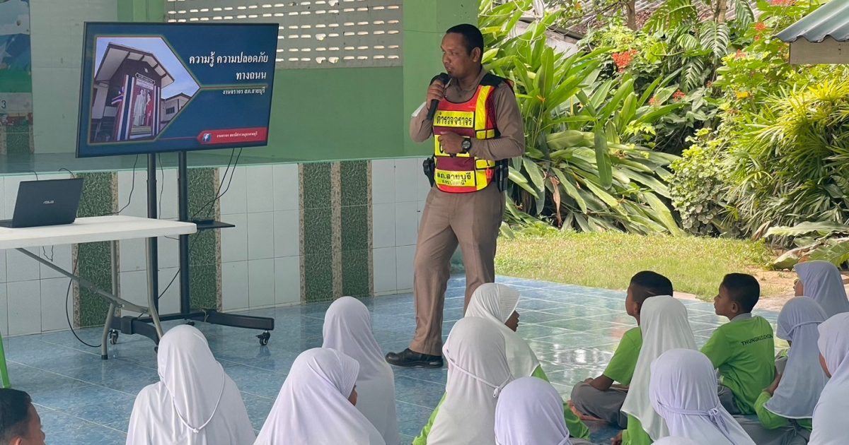เจ้าหน้าที่ตำรวจจราจร สภ.สายบุรี อบรมให้ความรู้ความเข้าใจเกี่ยวกับกฏหมายจราจร เพื่อให้เกิดความปลอดภัยในการใช้รถใช้ถนน ณ โรงเรียนบ้านทุ่งเค็จ