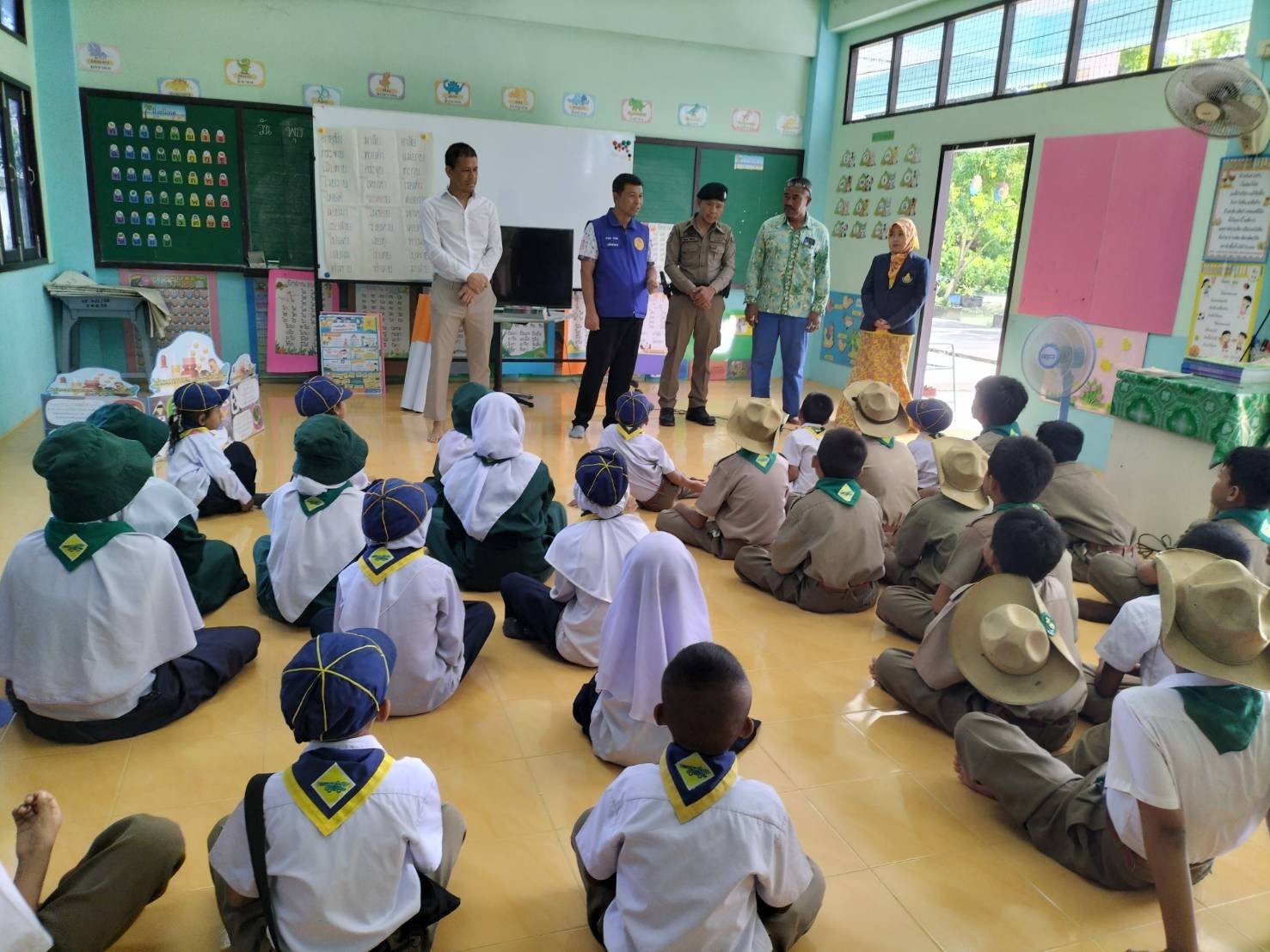 ครูแดร์ บรรยายให้ความรู้แก่นักเรียนเพื่อให้เด็กนักเรียนเข้าใจเกี่ยวกับการต่อต้านการใช้ยาเสพติด ณ โรงเรียนบ้านวังไชย ต.ละหาร อ.สายบุรี