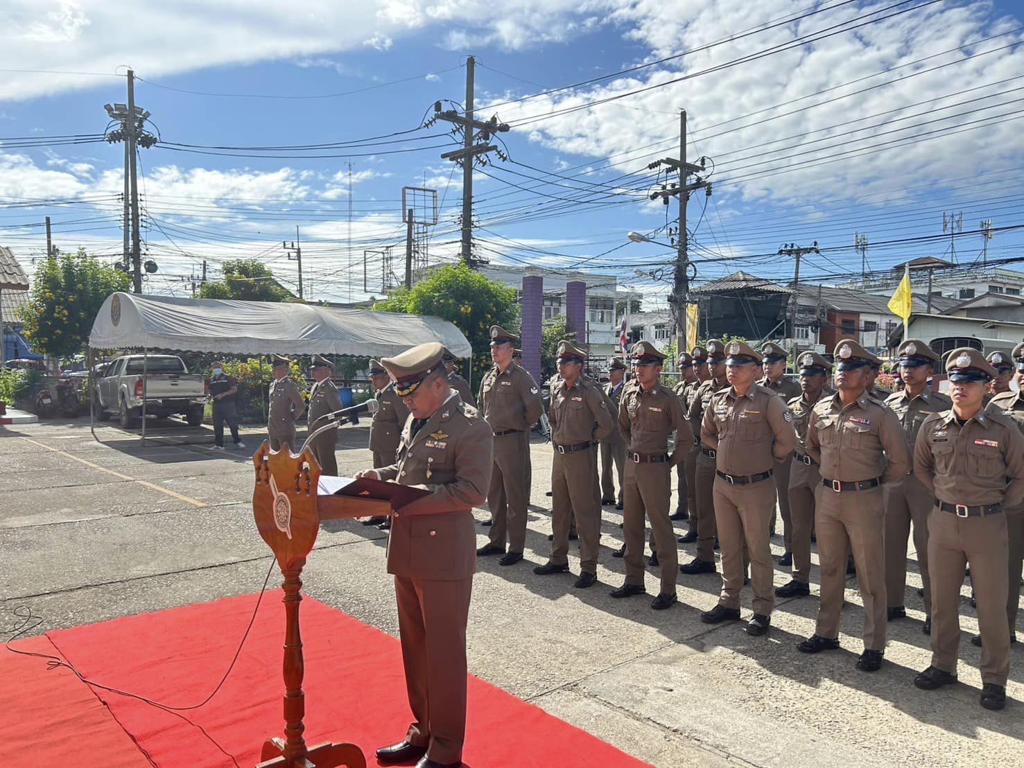 วันนี้ 17 ต.ค. 67 เวลา 08.30 น. พ.ต.อ.เฉลิมชัย เพชรกาศ ผกก.สภ.สายบุรี ,พ.ต.ท.วิชิต โชติการณ์ รอง ผกก(สอบสวน)สภ.สายบุรี ,พ.ต.ท.ธีระศักดิ์ เกิดสิน รอง ผกก.สส.สภ.สายบุรี ,พ.ต.ท.จำนัน ดำรงศักดิ์วิรุฬห์ สวป.สภ.สายบุรี ,พ.ต.ท.สมชาย สังข์แก้ว สว.อก.สภ.สายบุรี ,พ.ต.ท.ยงยุทธ แก้วละเอียด สว.(สอบสวน)สภ.สายบุรี ,พ.ต.ท.วินัย แซ่จิว สว.อก.สภ.มายอ(ปรก.สภ.สายบุรี) ,ร.ต.ท.วัฒนา ธรรมสโร ผบ.มว.ฉก.นปพ.ปน.42 ,ร.ต.ท.อนิรุต จันชู ผบ.มว.ฉก.นปพ.ปน.2 พร้อมด้วยข้าราชการตำรวจในสังกัดสถานีตำรวจภูธรสายบุรี จังหวัดปัตตานี ร่วมพิธีถวายคำสัตย์ปฏิญาณตน เนื่องในกิจกรรมวันตำรวจแห่งชาติประจำปี พุทธศักราช 2567 ซึ่งตรงกับวันที่ 17 ตุลาคมของทุกปี