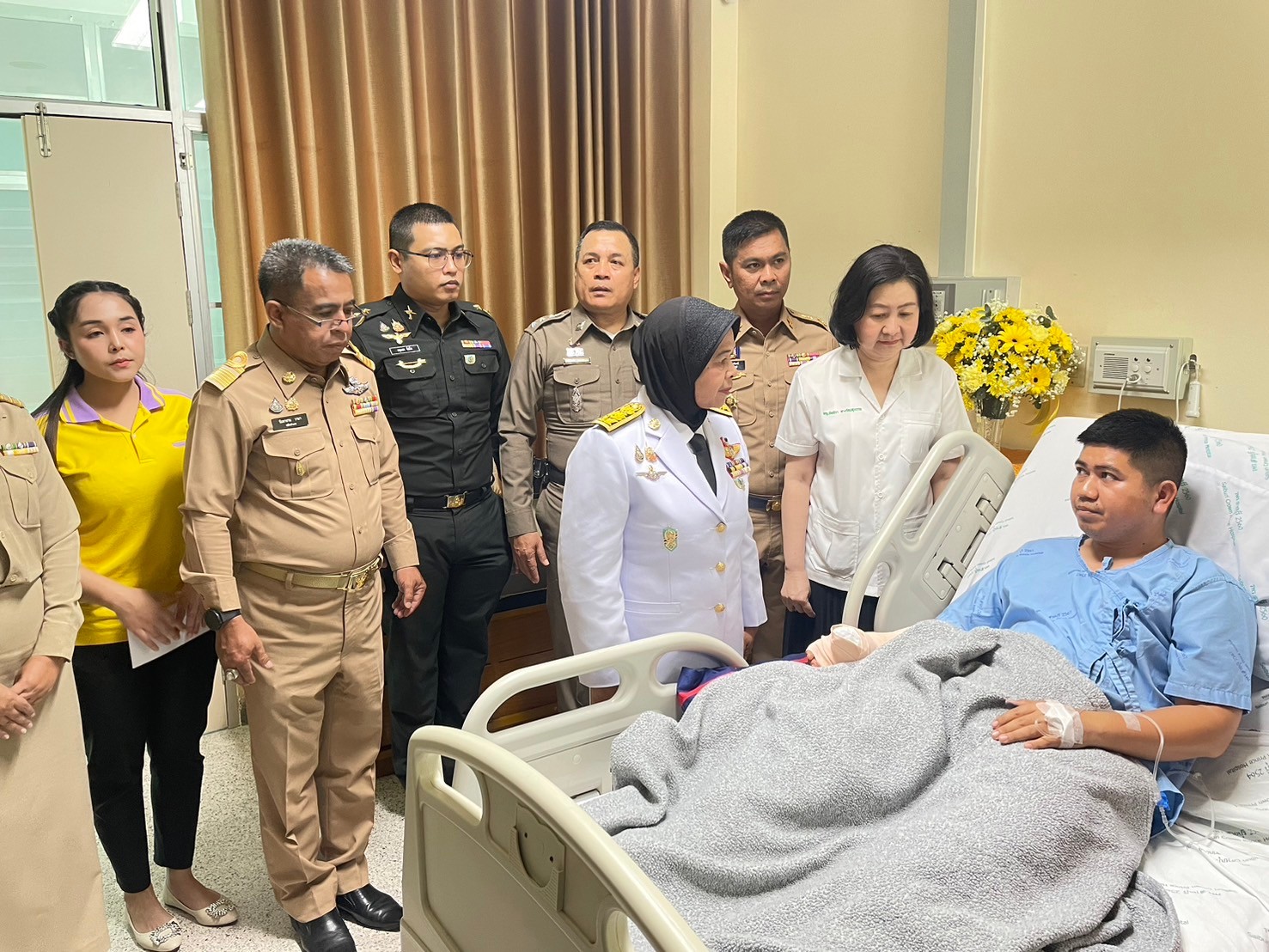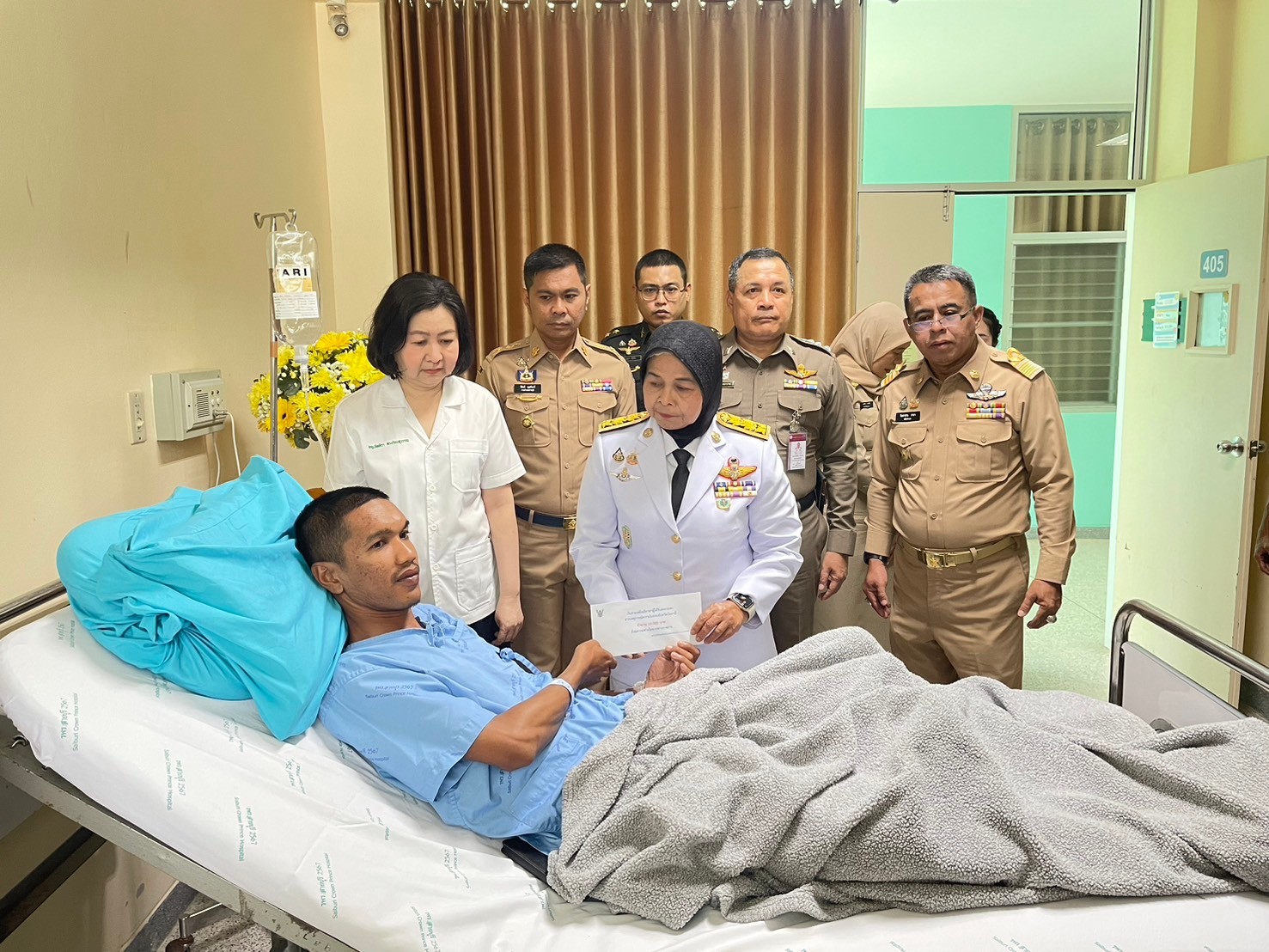 เมื่อวันที่4 มกราคม 2568 เวาลา 13.30 น. พ.ต.อ.เฉลิมชัย เพชรกาศ ผกก.สภ.สายบุรี ให้การต้อนรับ นางพาตีเมาะ สะดียามู ผู้ว่าราชการจังหวัดปัตตานีได้เดินทางมาเป็นผู้แทน มอบกระเช้าสิ่งของพระราชทานให้กับข้าราชการตำรวจสถานีตำรวจภูธรสายบุรี ที่ได้รับบาดเจ็บจากเหตุการณ์ความไม่สงบในพื้นที่ ณ โรงพยาบาลสมเด็จพระยุพราช